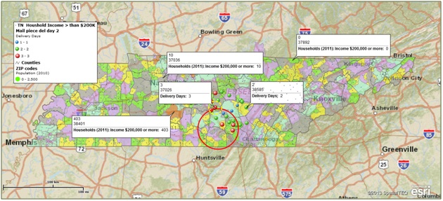 Common applications of web maps for direct marketing include the creation of marketing and sales territories, tracking deliveries by zip code, and the visualization of measured results by zip code or county. But there are many advanced direct marketing strategies that web mapping makes possible.