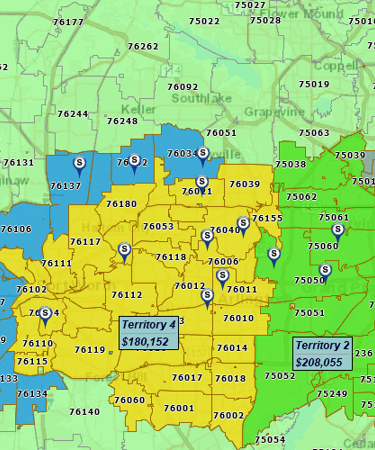 Easily create and manage sales, service, delivery or franchise territories by ZIP code, county or state. Search your business data within specified territories. Use ZIP code mapping to define your critical areas of interest.