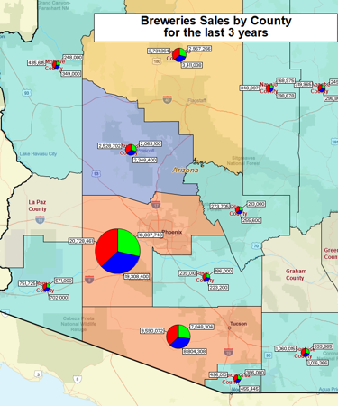Graphically depict your business data on a map using pie or bar charts. Visualize multiple values per location using charts with a customized look, color scheme, and size. Use charts to show revenue by product, invoices due vs. paid, items ordered vs. shipped, sales by customer type, or sales by year.
